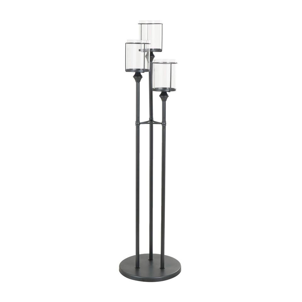 Elegante diseño geométrico piso candelabro decorativo negro Metal y vidrio Hurricane Set
