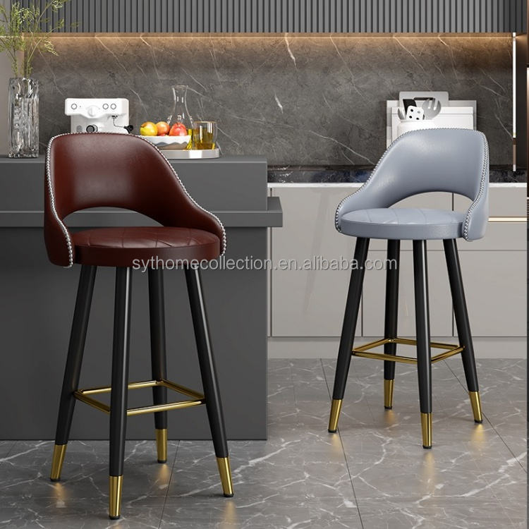 Sillas de Bar Modernas y Elegantes con Respaldo Curvo, Tapicería de PU y Patas con Detalles Dorados para Cocina o Bar