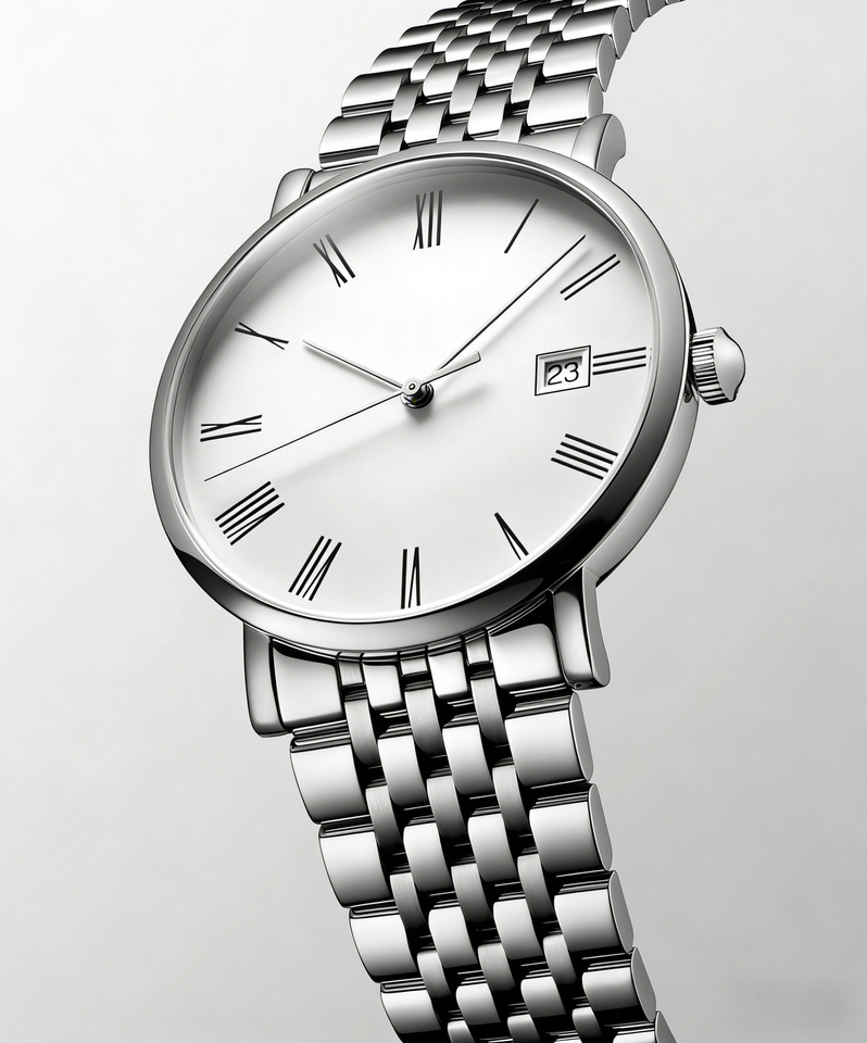 Elegante Reloj de Pulsera con Esfera Abierta y Números Romanos, Ventana de Fecha, Correa de Acero Inoxidable para Hombre, Uso Diario y de Oficina, Longinesing
