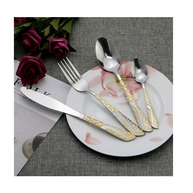 Elegante Juego de Cubiertos de Acero Inoxidable con Acabado Pulido para Eventos Especiales, Restaurantes, Hoteles, Juego de Cubiertos Modernos