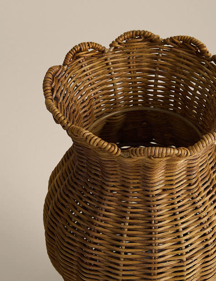 Elegante Florero Decorativo de Mimbre y Ratán, Moderno Florero Decorativo para Arreglos Florales y Decoración del Hogar