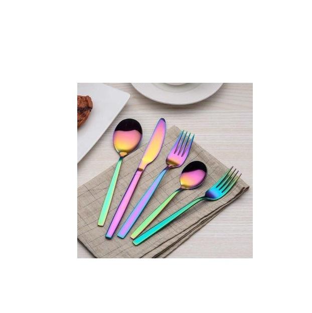 Elegante y colorido estilo americano, 6 uds., cubiertos de acero inoxidable con juegos de cubiertos decorativos de arcoíris, juego de cubiertos elegante
