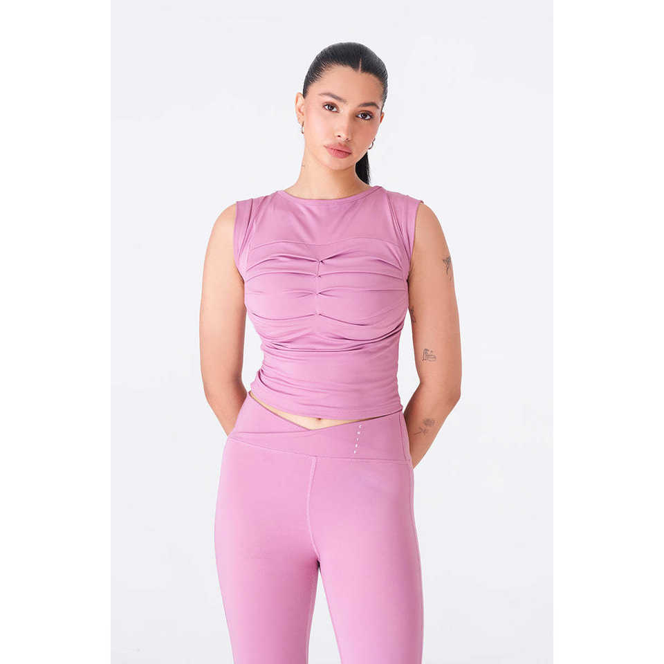 Top de gimnasio activo melocotón elegante y elegante para mujer