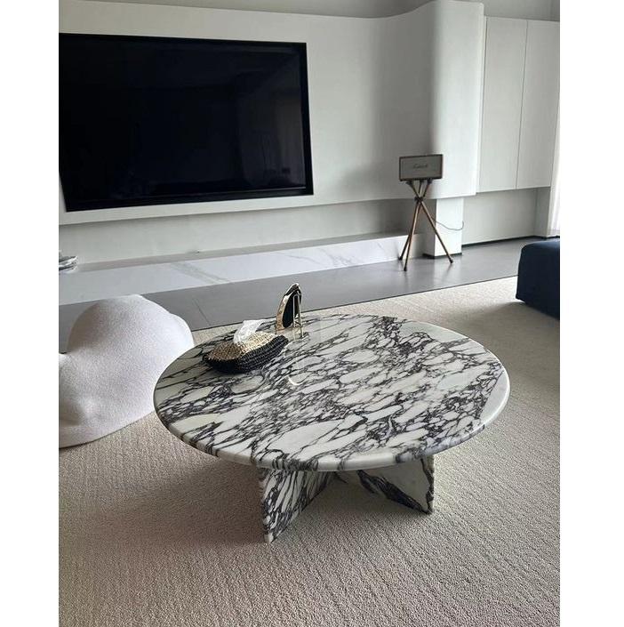 Elegante mesa de centro de mármol blanco con parte superior de piedra duradera, decoración minimalista para sala de estar, centro de mesa de último diseño