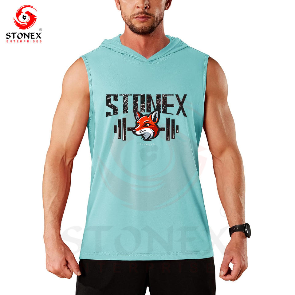 Sin mangas de alta calidad de logotipo personalizado de poliéster culturismo chaleco con capucha Fitness gimnasio correr chaleco con capucha