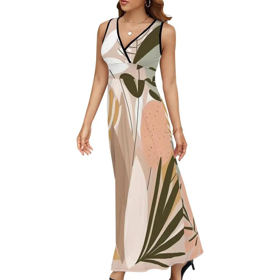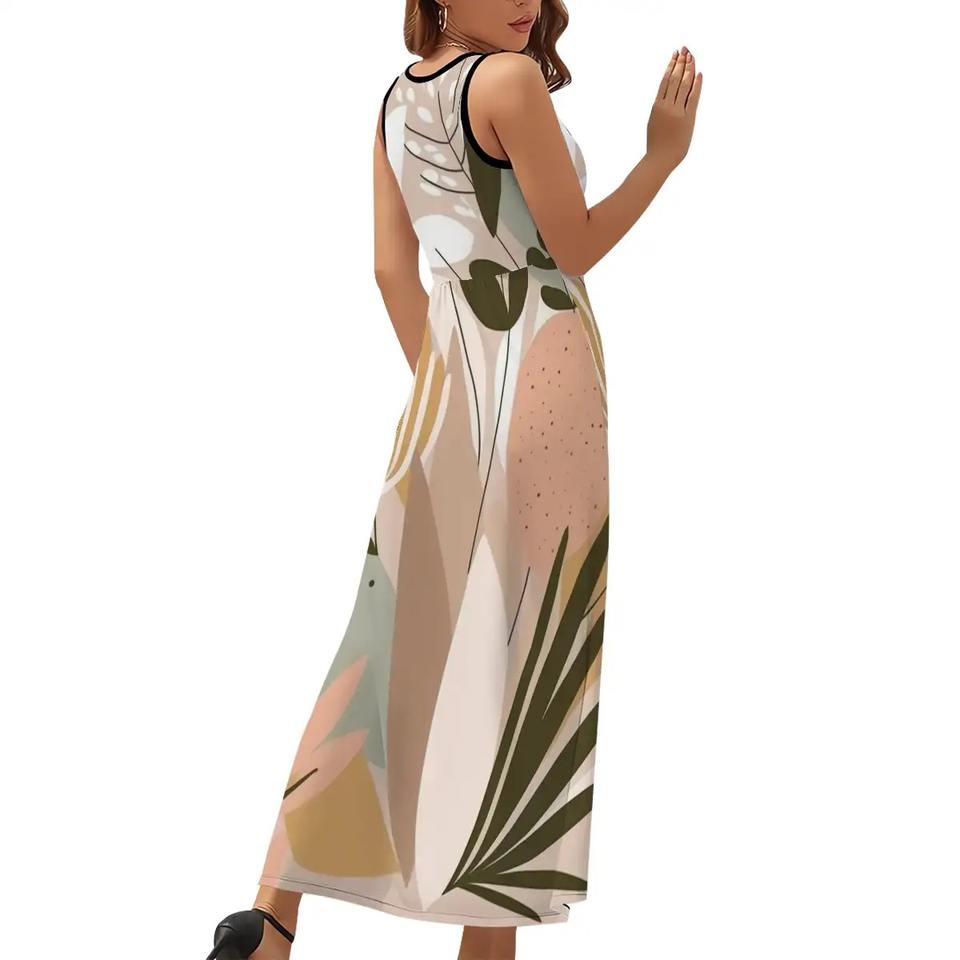 Imagen personalizada sin mangas Maxi vestido cuello cuadrado elegante dulce ODM Boutique VESTIDO talla única/XS Empire sólido hasta el suelo para el día del Club