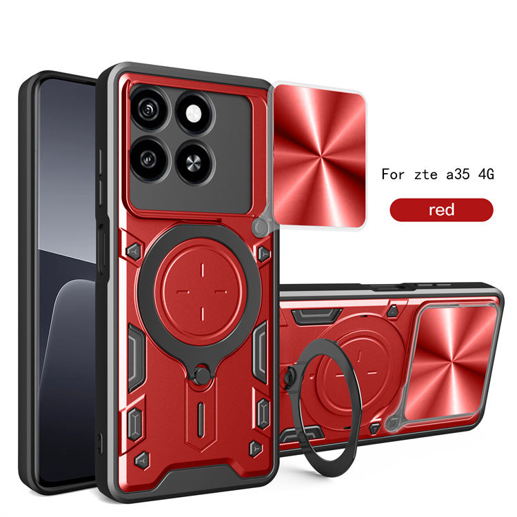 Ventana deslizante lente protección armadura Kickstand magnético a prueba de golpes teléfono móvil funda trasera para ZTE Blade A35 4G/A55 4G/A33S 4G