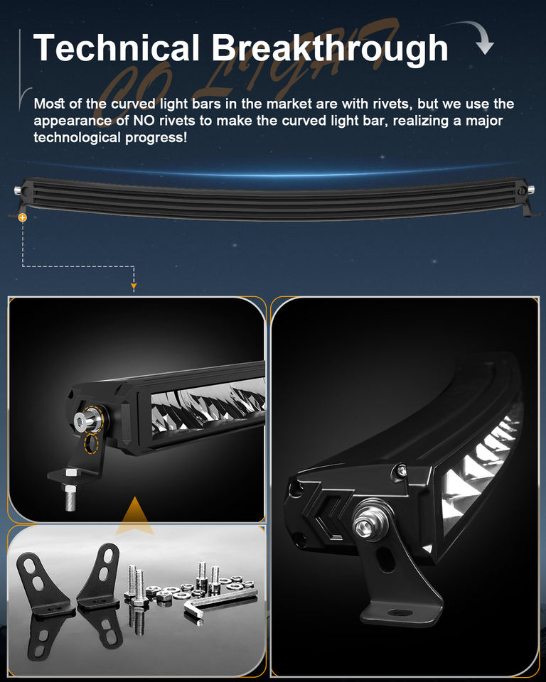 Barra de luz LED delgada de 20 pulgadas con luz de conducción combinada blanca con barra de luz LED de diseño curvo para camión