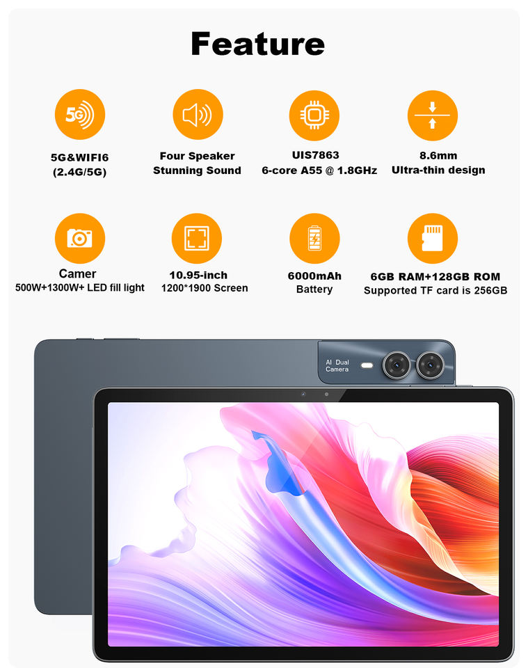 Tablet PC 2 en 1 Surface Pro de Diseño Delgado de 11 Pulgadas, Android 14, 6 GB de RAM, 128 GB de SSD, Wi-Fi, 3G/4G/5G, MTK Octa Core, 1920x1200, Nuevo