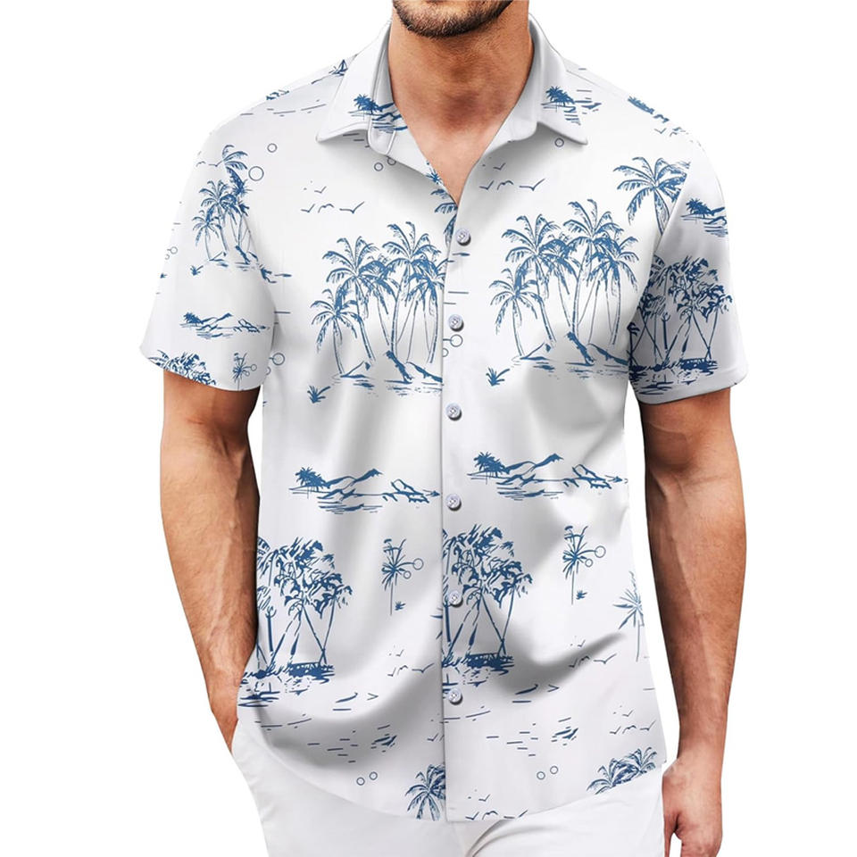 Camisas estampadas de manga corta ajustadas para hombre con etiqueta de logotipo bordado personalizado y embalaje de regalo para eventos