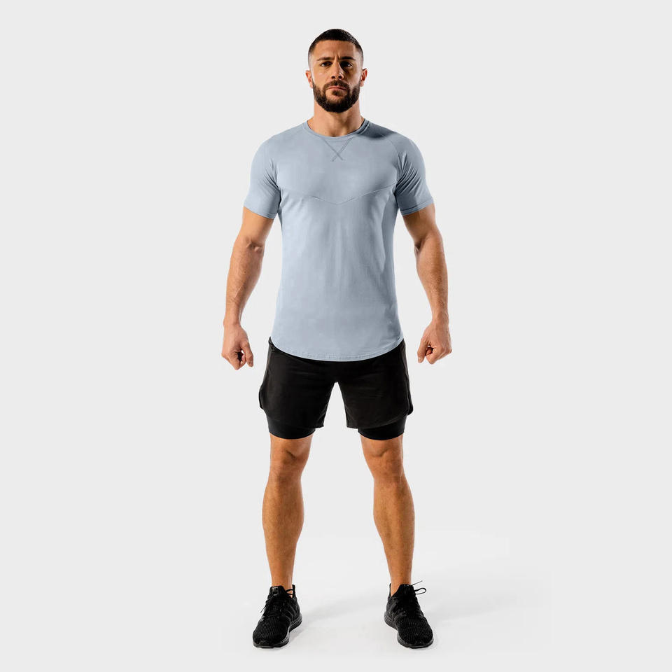 Camiseta Slim Fit Summer Gym para hombre Color sólido con cuello redondo de impresión digital-Precio de fábrica
