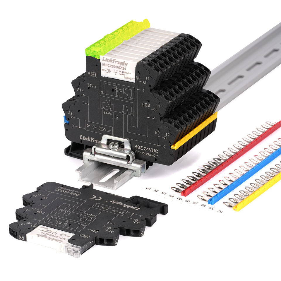 Módulo de Relé Intermedio Delgado de 24 VCC, Conexión de Abrazadera de Tensión, Riel DIN, Interruptor LED PLC, Contacto AgSnO 1NO 1NC
