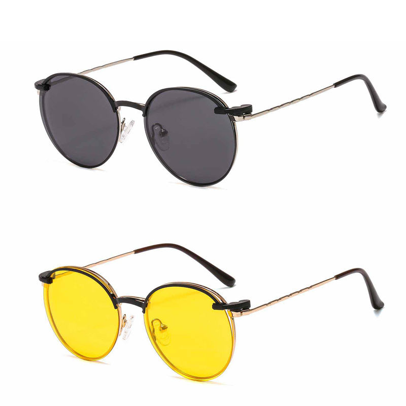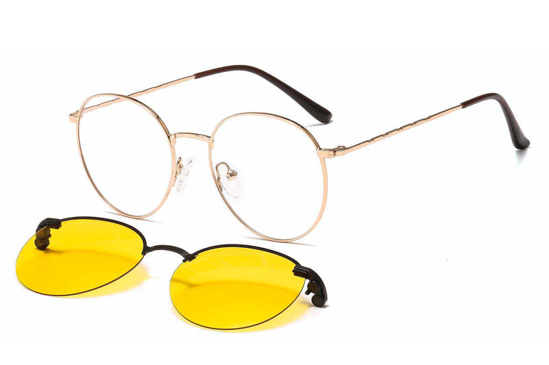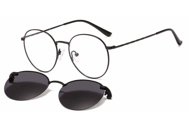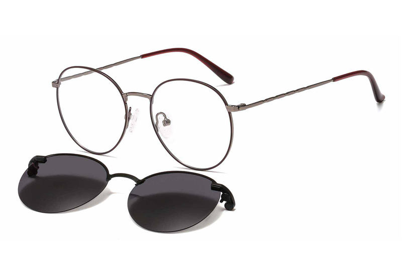 Montura de Gafas de Sol Metálicas Delgadas con Clip Magnético Interno, Lentes Ópticas Polarizadas de Forma Redonda, Modelo 33080