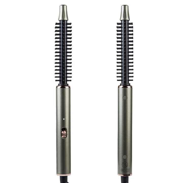 Cepillo de cerámica para rizar el pelo para hombres y hombres, tamaño Mini, Delgado, fácil de sostener, calentador PTC, iónico negativo, antiestático, LED, especial