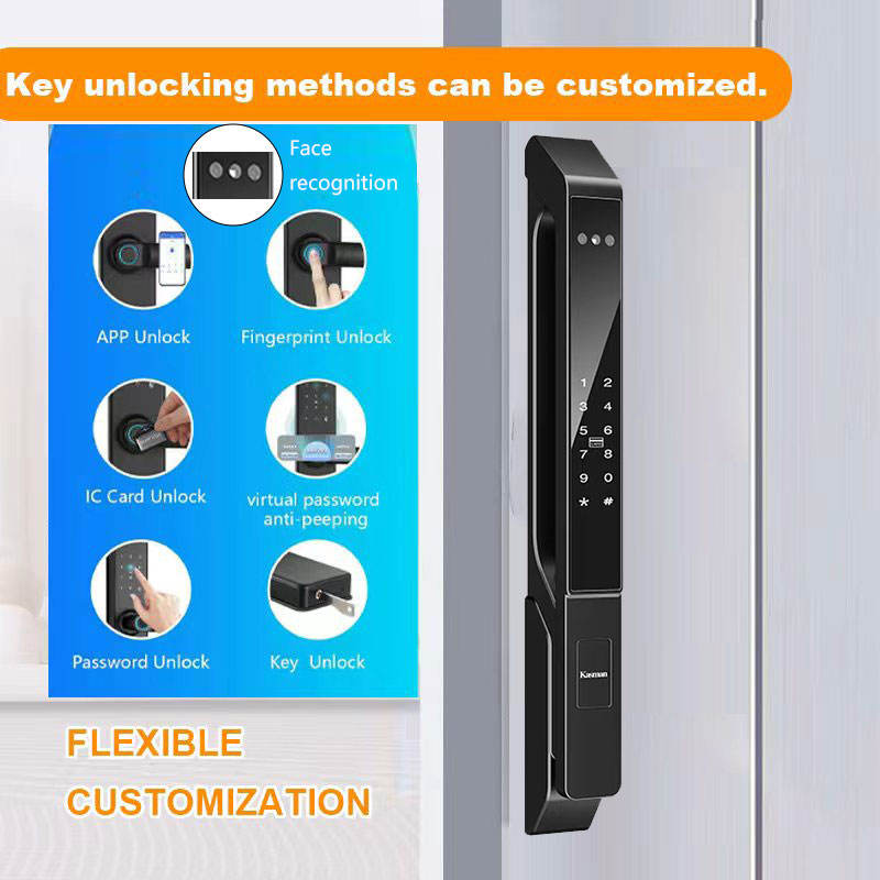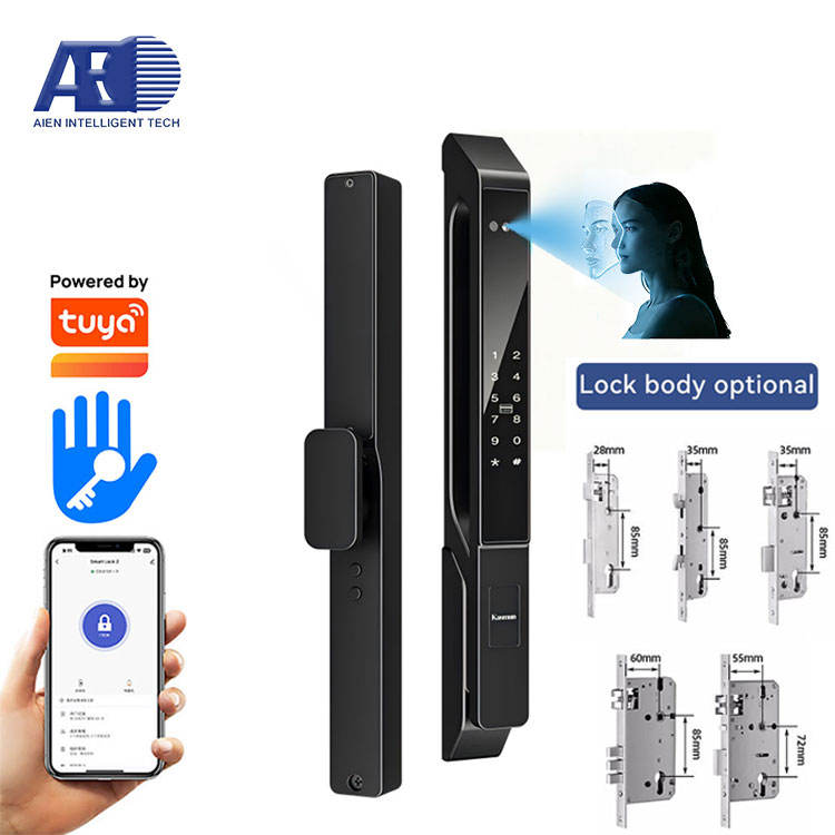Cerradura Inteligente Delgada para Puertas Corredizas, Entrada sin Llave 6 en 1 con Reconocimiento Facial, Huella Dactilar, Código de Acceso, Tarjeta IC, Control por Aplicación, Llave