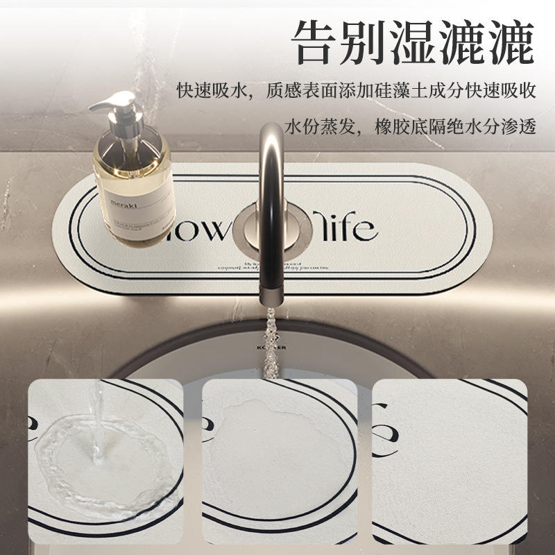 Tapete Escurridor Ovalado para Fregadero de Cocina, Absorbente, de Fibra de Poliéster, con Diseño Geométrico Abstracto