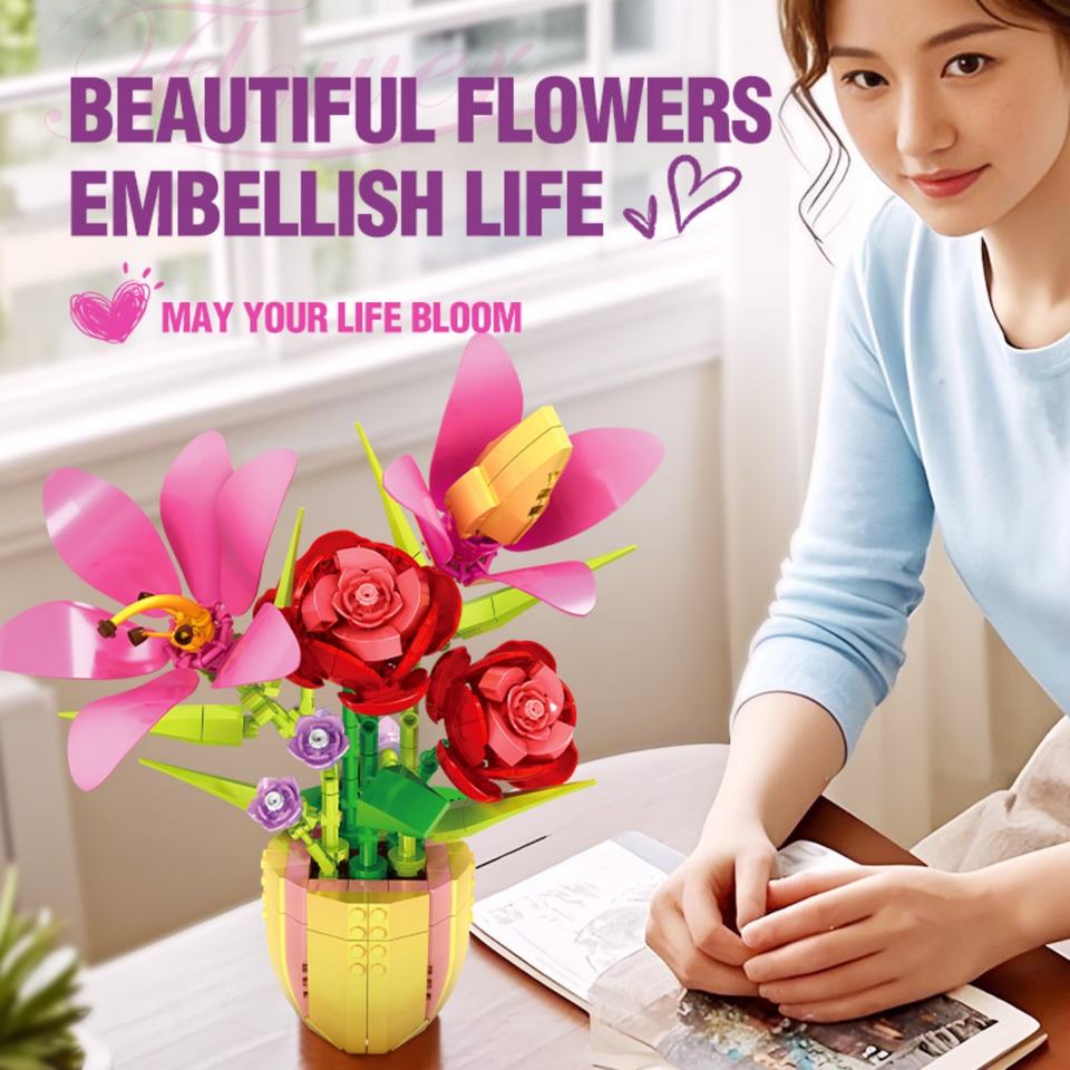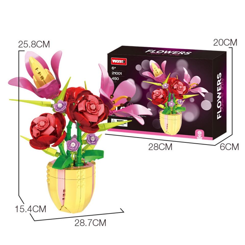 Pequeñas Partículas de Plástico 1/8 para Armar, Adornos de Escritorio para Niñas - Bloques de Construcción Lily Rose, Modelo Transfronterizo, Juguetes de Plantas en Maceta