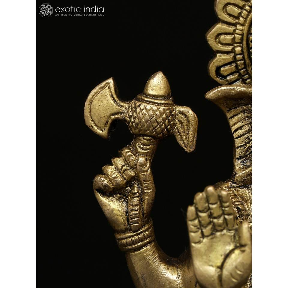Pequeña estatua de latón de 6 pulgadas con cuatro brazos de Ganesha, escultura de bendición India