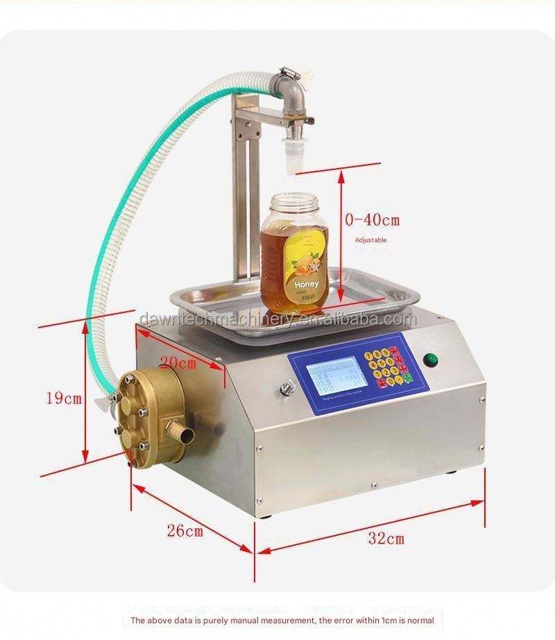 Máquina de llenado automática pequeña para líquidos viscosos: miel, pasta, aceite de cocina, manteca, salsa de chocolate, jarabe, aceite para engranajes