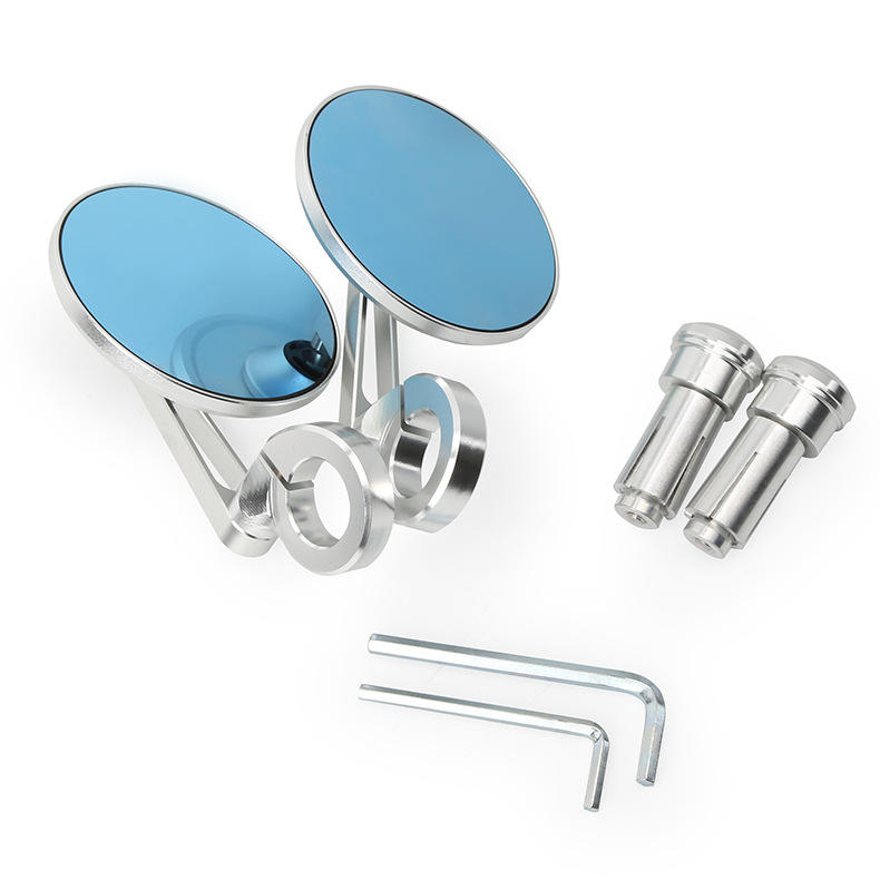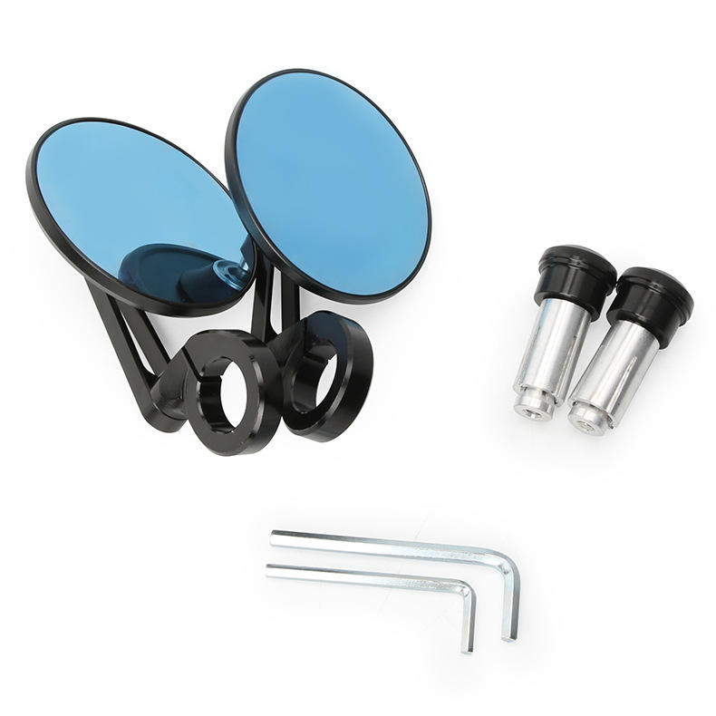 Espejo Retrovisor lateral Retro azul pequeño para Cafe Racer Universal Bar End motocicleta nueva condición vidrio aleación de aluminio
