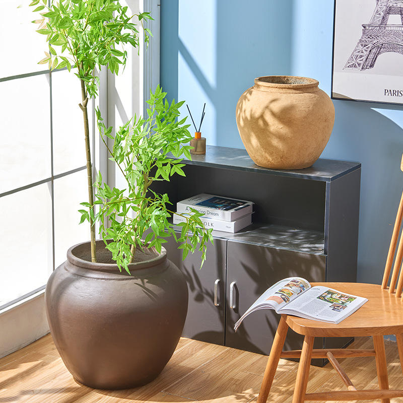 Maceta de cemento de barro de magnesio Retro Circular de pequeño calibre, jardín interior, patio, tarro de cerámica similar minimalista, guardería