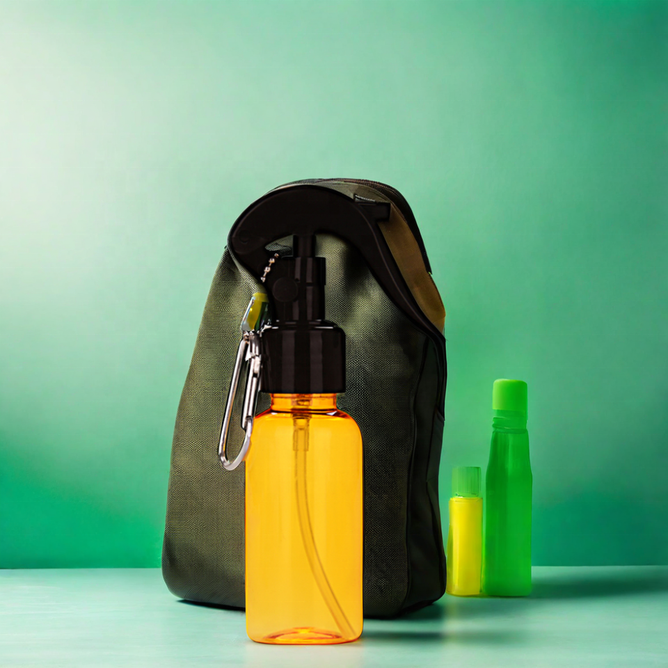 Líquido repelente de mosquitos desinfectante con Alcohol de pequeña capacidad, 50ml, cilindro de pulverización moderno, botellas de PET con tapa de pulverización