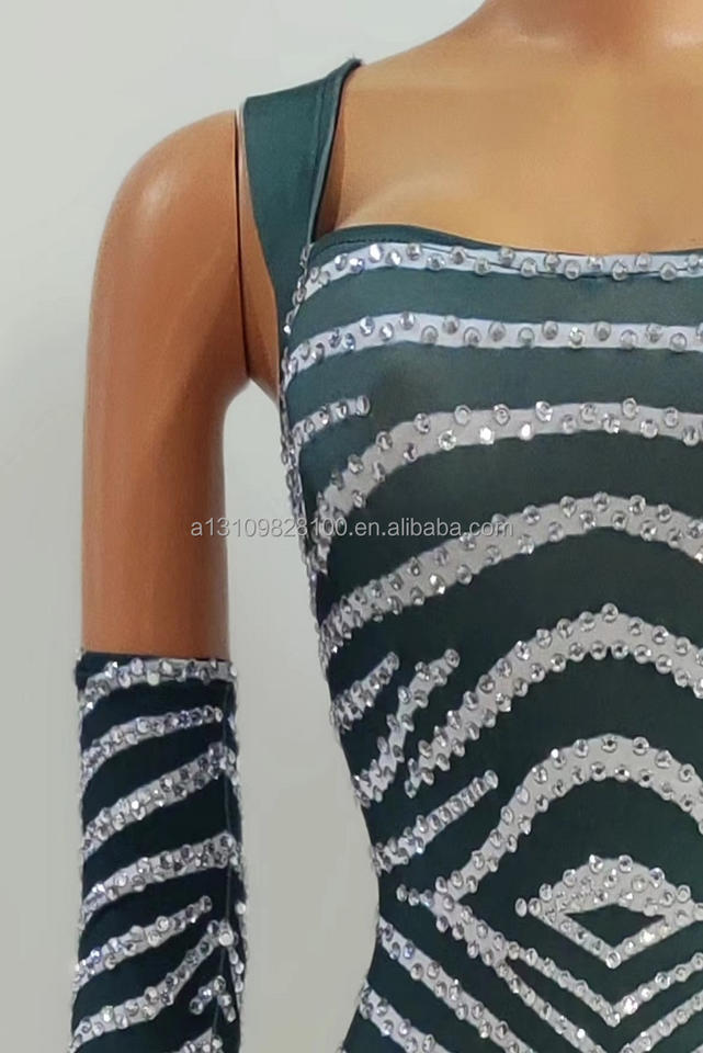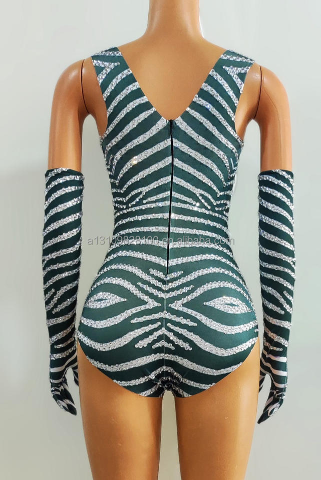 Mono con borlas aerodinámicas plateadas de diamante completo de clase pequeña con guantes DjDs Guest Gogo Nightclub Bar Disfraces de actuación