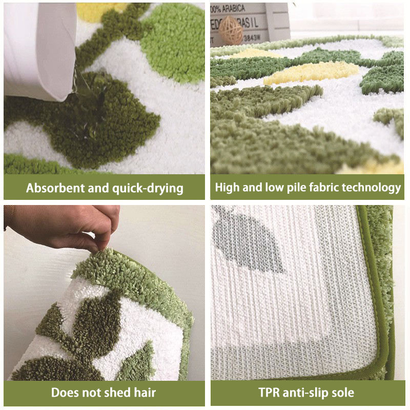 Alfombra de Baño de Felpa Gruesa de Poliéster con Patrón de Hojas Transparentes, Alfombra Absorbente de Agua, Alfombra Moderna para Dormitorio con Base Antideslizante de TPR