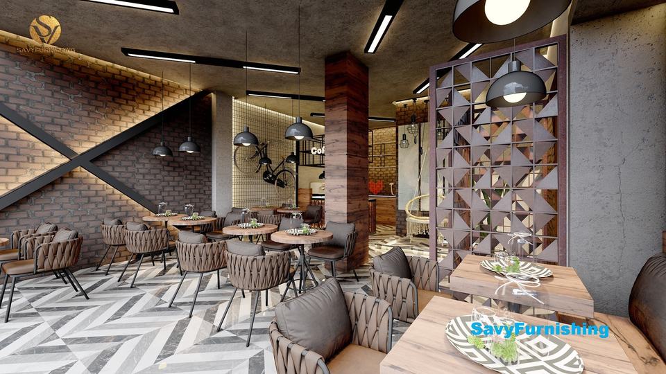 Conjunto de Mesa y Sillas de Comedor para Restaurante, Diseño Interior de Cafetería Pequeña, Silla Tejida con Mesa de Madera para Cafetería