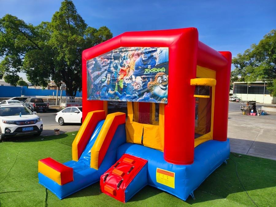 Pequeña casa inflable comercial de PVC para niños, casa hinchable portátil con tobogán para parques infantiles, incluye gran valor