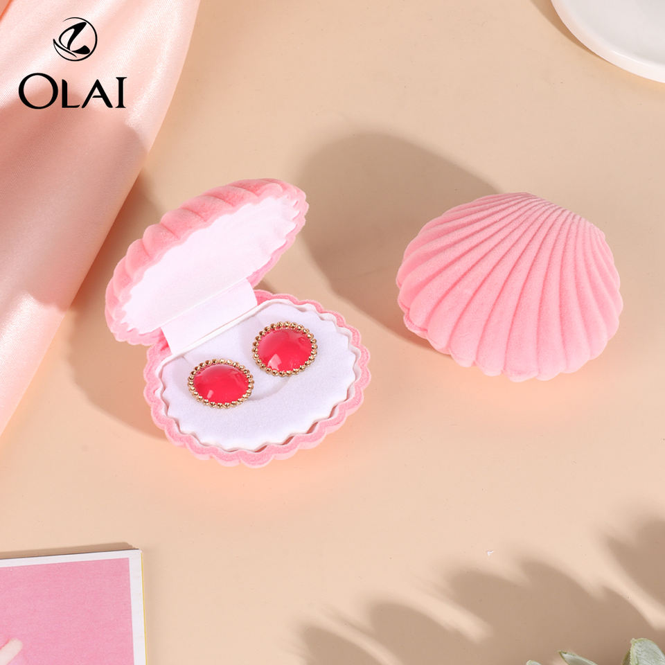 Pequeñas cajas de joyería de la baratija de Shell de la almeja amistosa de Eco del terciopelo blancoNombre del elemento