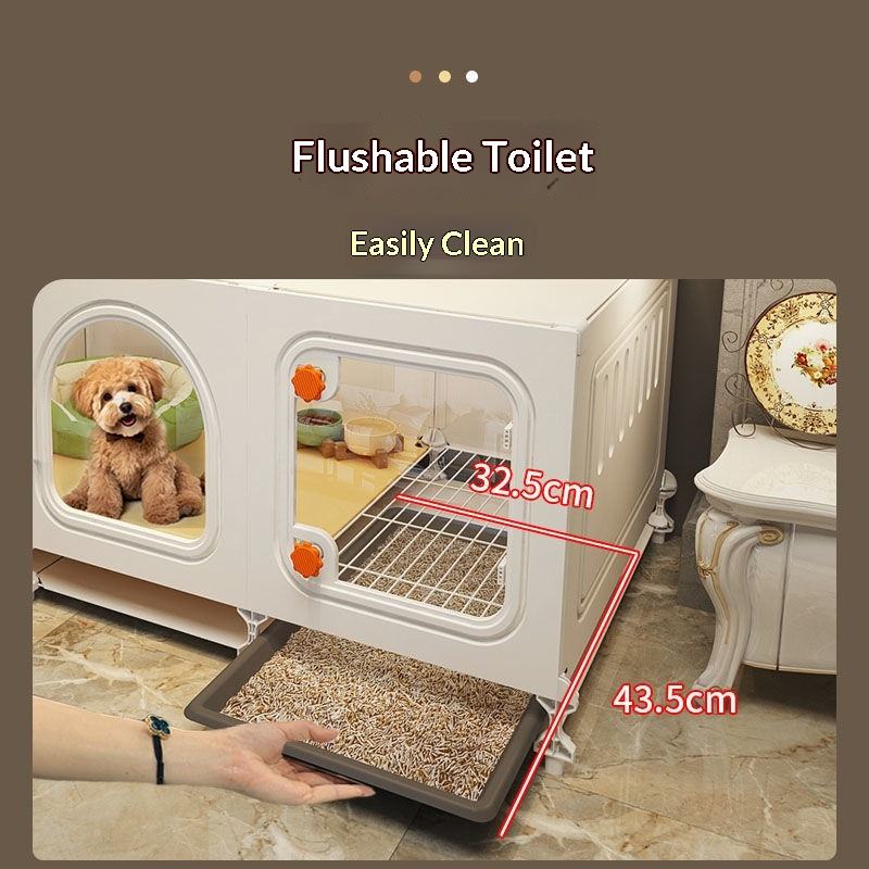 Jaula para Perros Pequeños con Baño Integrado, Caseta de Alambre de Hierro, Una Habitación, Una Sala de Estar, Villa para Cachorros, Hogar Interior