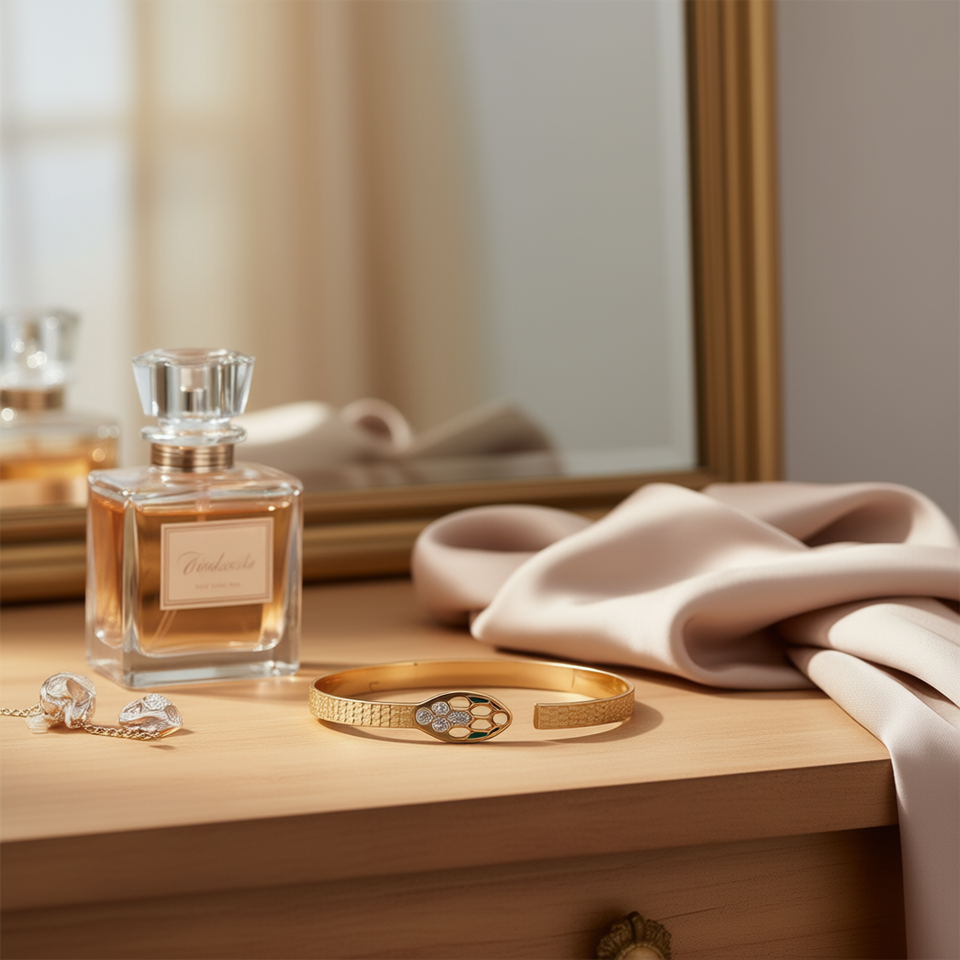 Pulsera de acero inoxidable con forma de serpiente pequeña con puntos, joyería para mujer en tono dorado