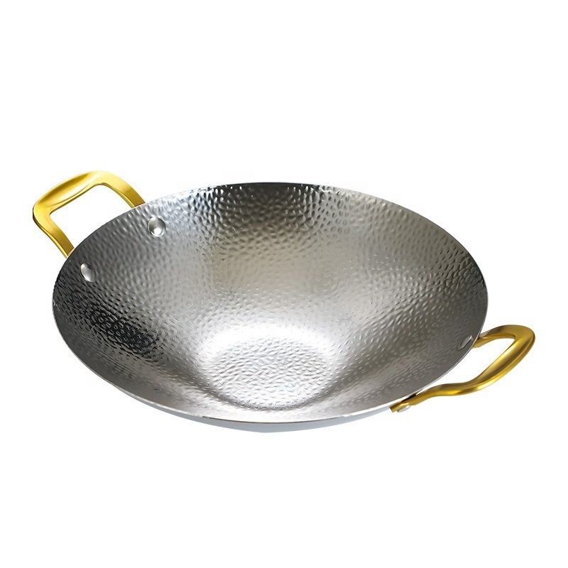 Caldero de barra dorada pequeño de doble manija, olla comercial de acero inoxidable para mariscos, caldera seca coreana, olla caliente para estufa de Alcohol
