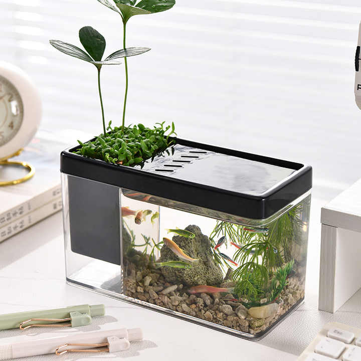 Pequeño tanque de escritorio PET transparente ecológico, cuenco de pez dorado anfibio cuadrado para sala de estar, Acuario de peces pequeños en caja