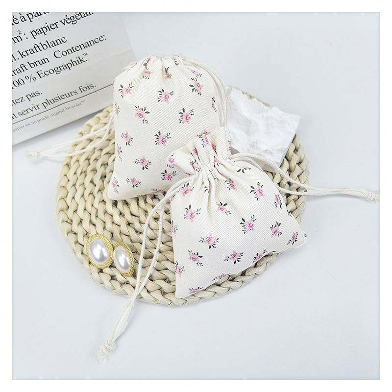 Bolsa de Algodón Reciclable Personalizada con Diseño de Flores Pequeñas y Cordón, Suave y Cómoda para Guardar Joyas