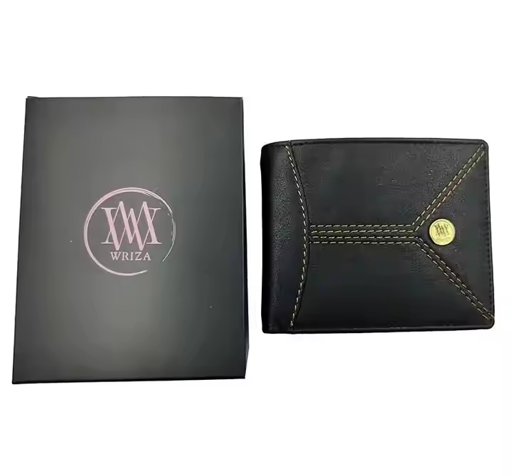 Cartera de bloqueo RFID de cuero genuino de acordeón de pliegue pequeño, Notecase con logotipo personalizado y tarjetero, cartera Premium negra