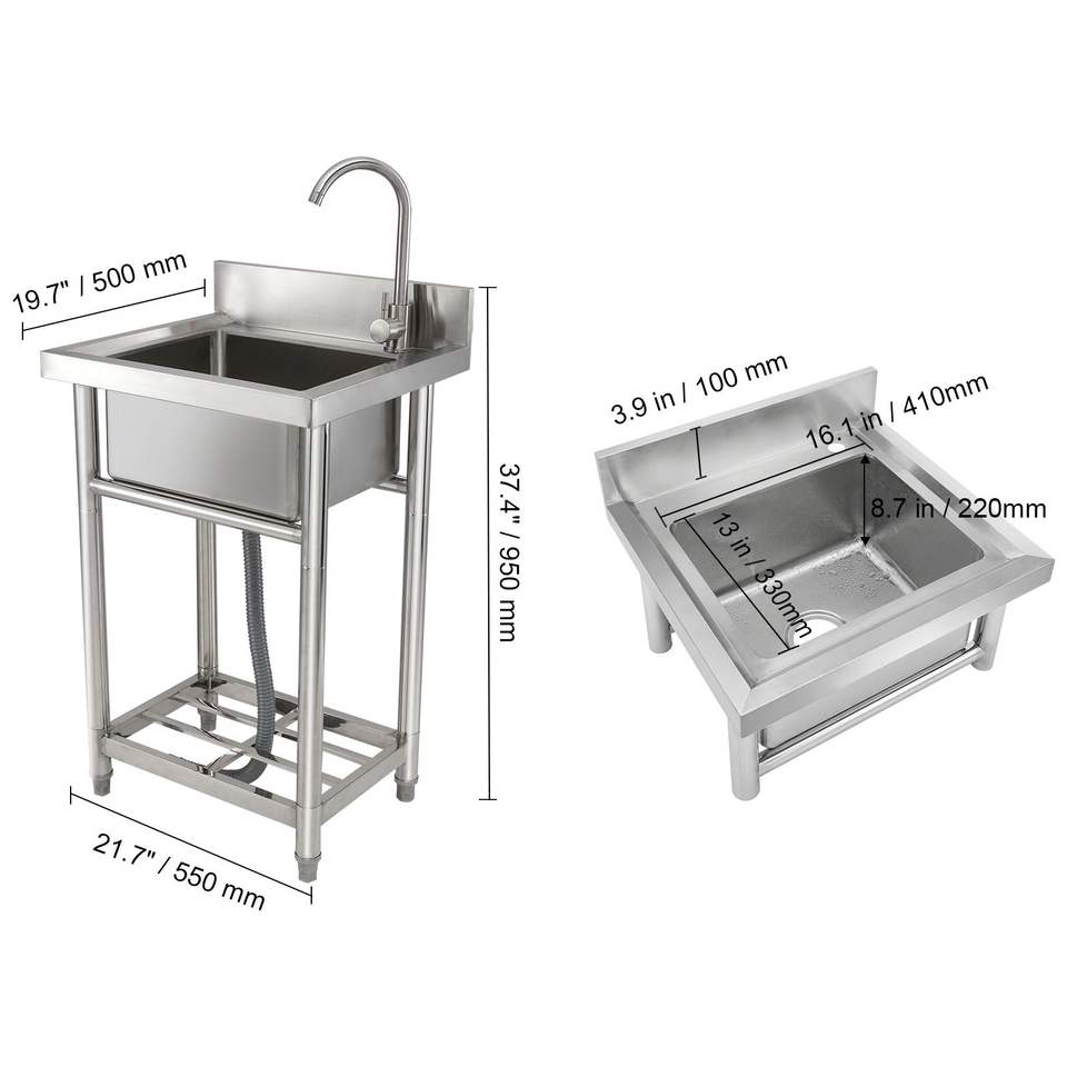 Fregadero Comercial Pequeño Independiente de Acero Inoxidable de un Solo Compartimento 16 x 13 x 8.7 Pulgadas con Grifo y Patas para Cocina