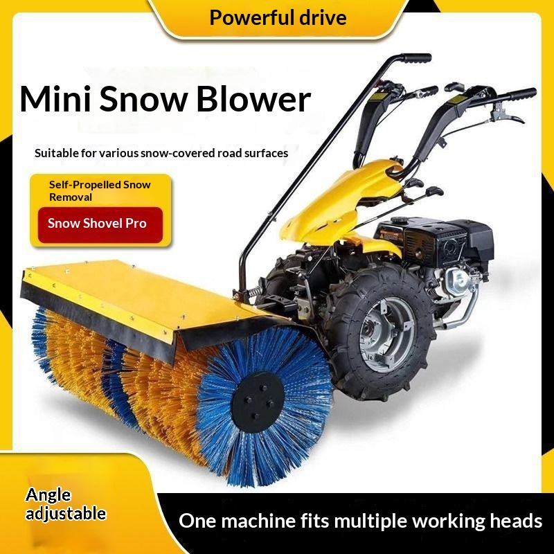 Pequeña barredora de nieve multifuncional con cepillo rodante y empuje manual para limpieza de caminos