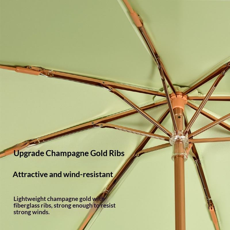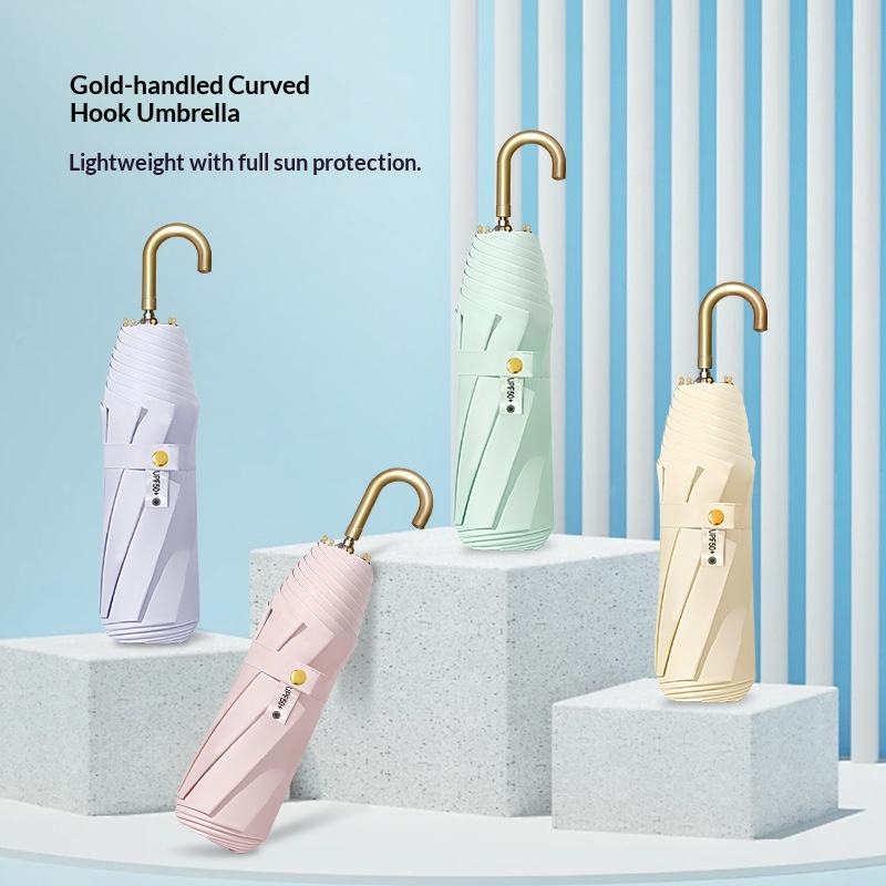 Sombrilla Plegable para Mujer con Gancho Dorado Pequeño, 8 Varillas, Protección Solar y Lluvia, Venta al por Mayor para Fabricantes