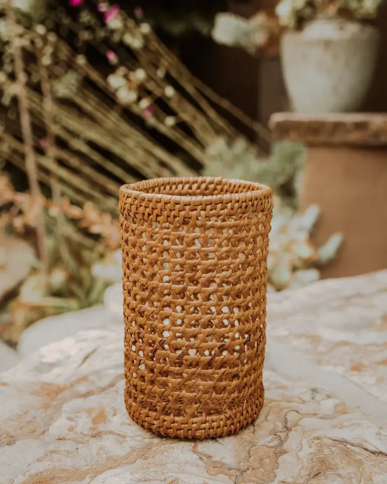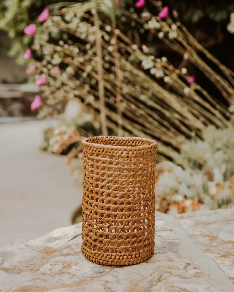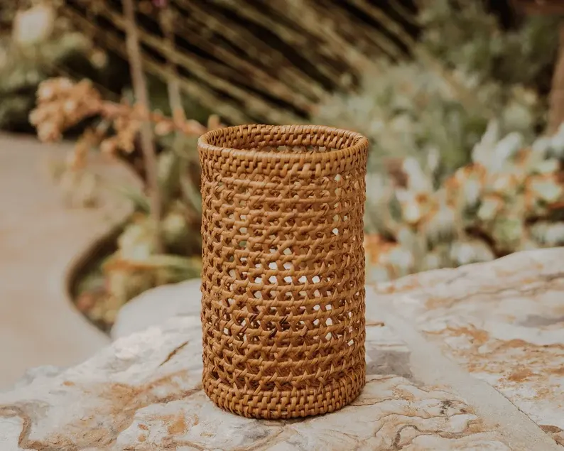 Pequeña cesta de ratán tejida a mano, los mejores accesorios de decoración del hogar y organizadores de escritorio, portalápices