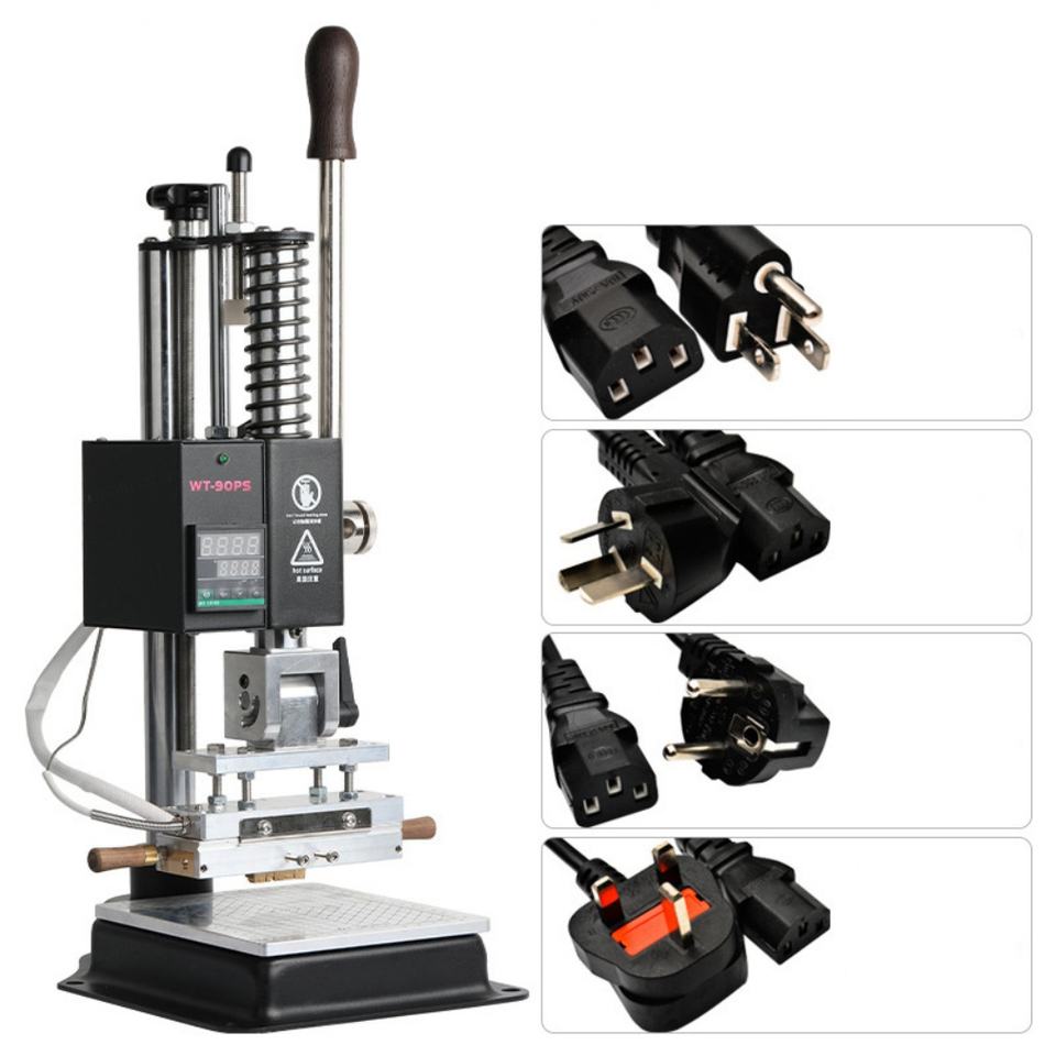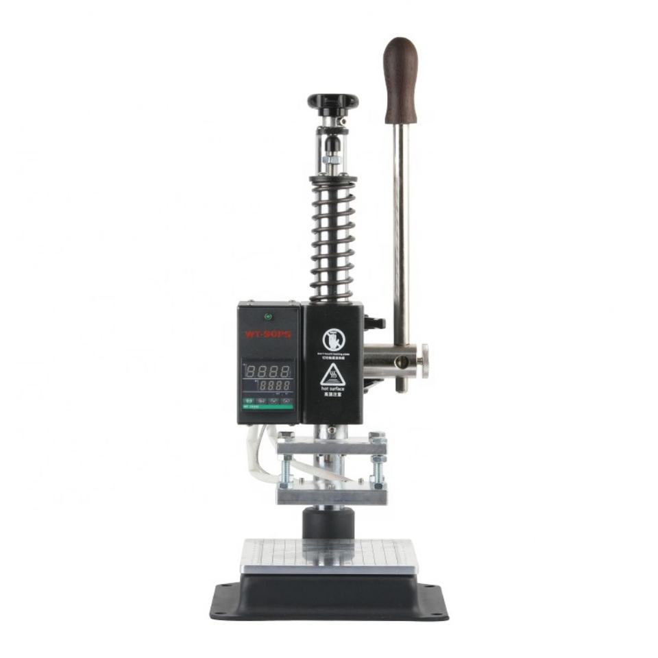 Máquina de Prensa de Calor Eléctrica Manual Pequeña para Estampado en Caliente y Grabado de Botellas de Vidrio, Licencias, Cuero y Placas con Logotipo