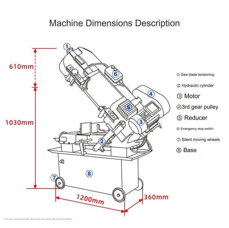 Sierra de Cinta Horizontal Pequeña, Sierra de Cinta Metálica de Tensión Manual para Construcción, Nueva Condición Usada, Incluye Motor y Engranaje
