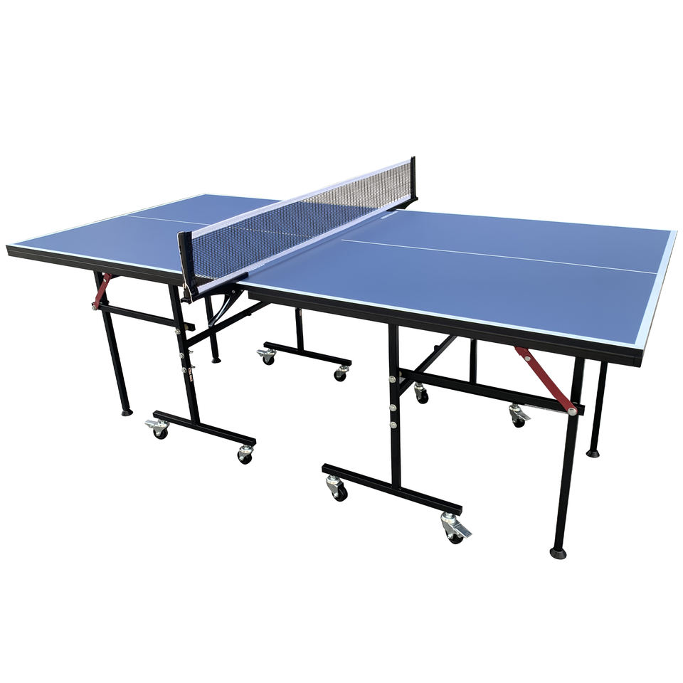 Mesa de Tenis de Mesa Pequeña para Interiores con Red y Postes de Sujeción Rápida, Mesa Plegable para Interiores y Exteriores, Negra y Azul