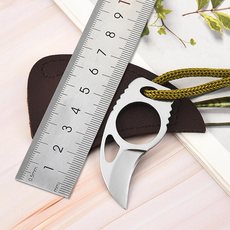 Cuchillo Pequeño con Funda de Cuero, Mini Cuchillo de Hoja Fija, Cordón, Abrecajas, Autodefensa, Cuchillos EDC