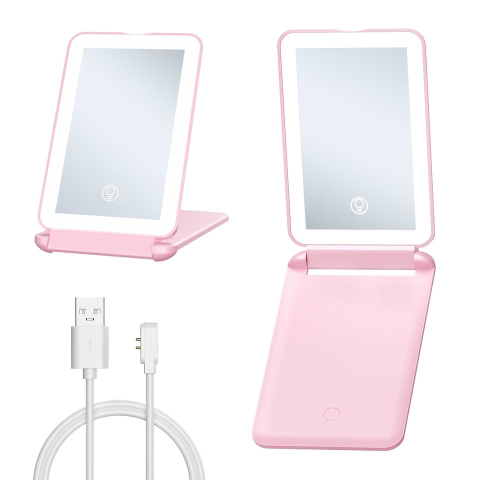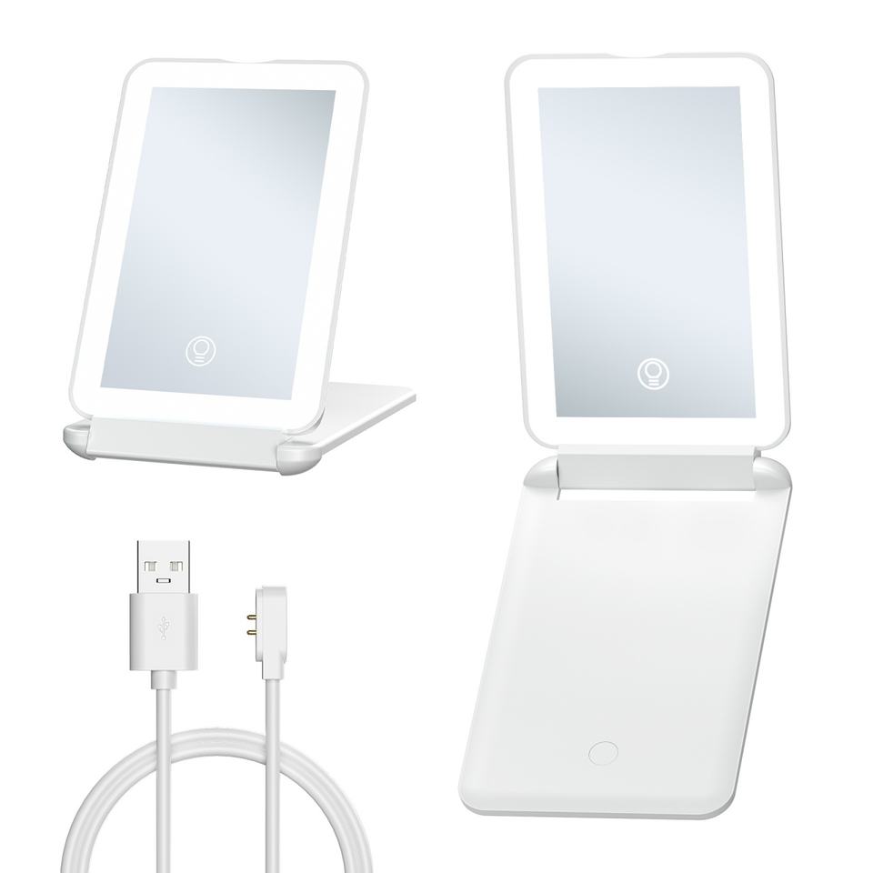 Espejo de Maquillaje LED Pequeño, Inteligente, Táctil, Portátil, de Viaje, con Luces LED, Recargable por USB