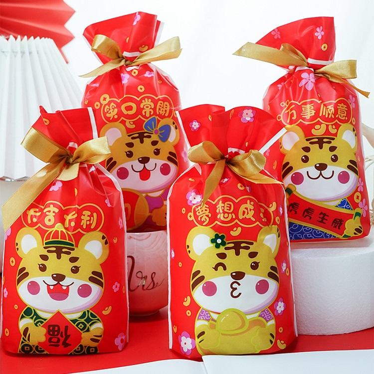 Bolsas de Regalo con Cordón de Maneki Neko Pequeño, Rojas, para el Año Nuevo Chino, Bolsa de Dulces Fula