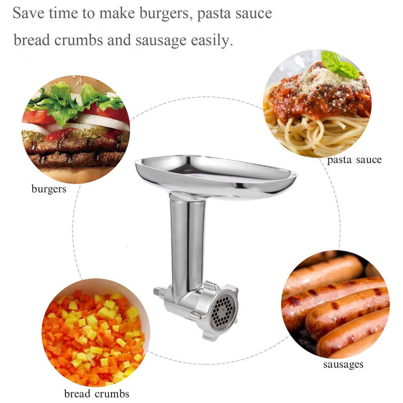 Picadora pequeña de Alimentos/Carne, accesorio para mezcladores de pie con 4 placas de molienda, 2 tubos de embutidor de salchichas
