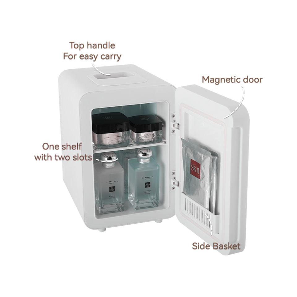 Mini Refrigerador Pequeño de 4L con Puerta de Vidrio, Enfriamiento y Calefacción, Doble Voltaje, para Almacenamiento de Cerveza, Bebidas y Leche