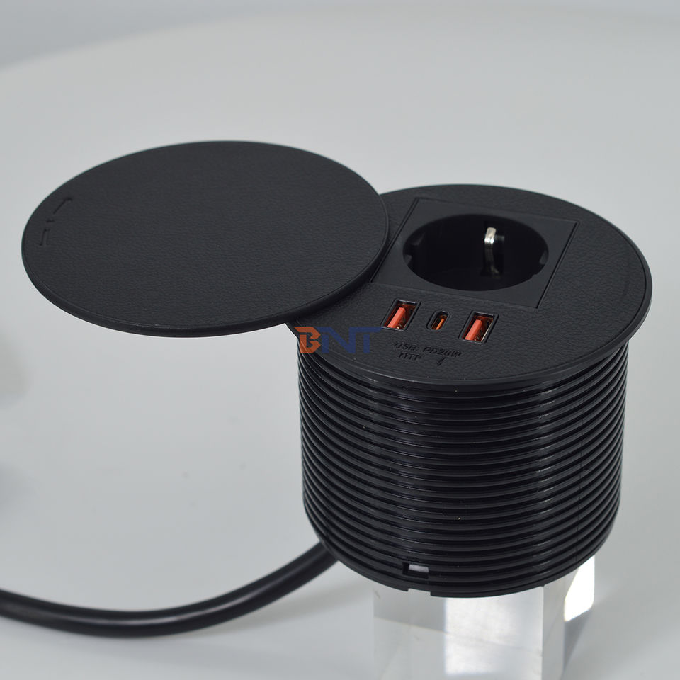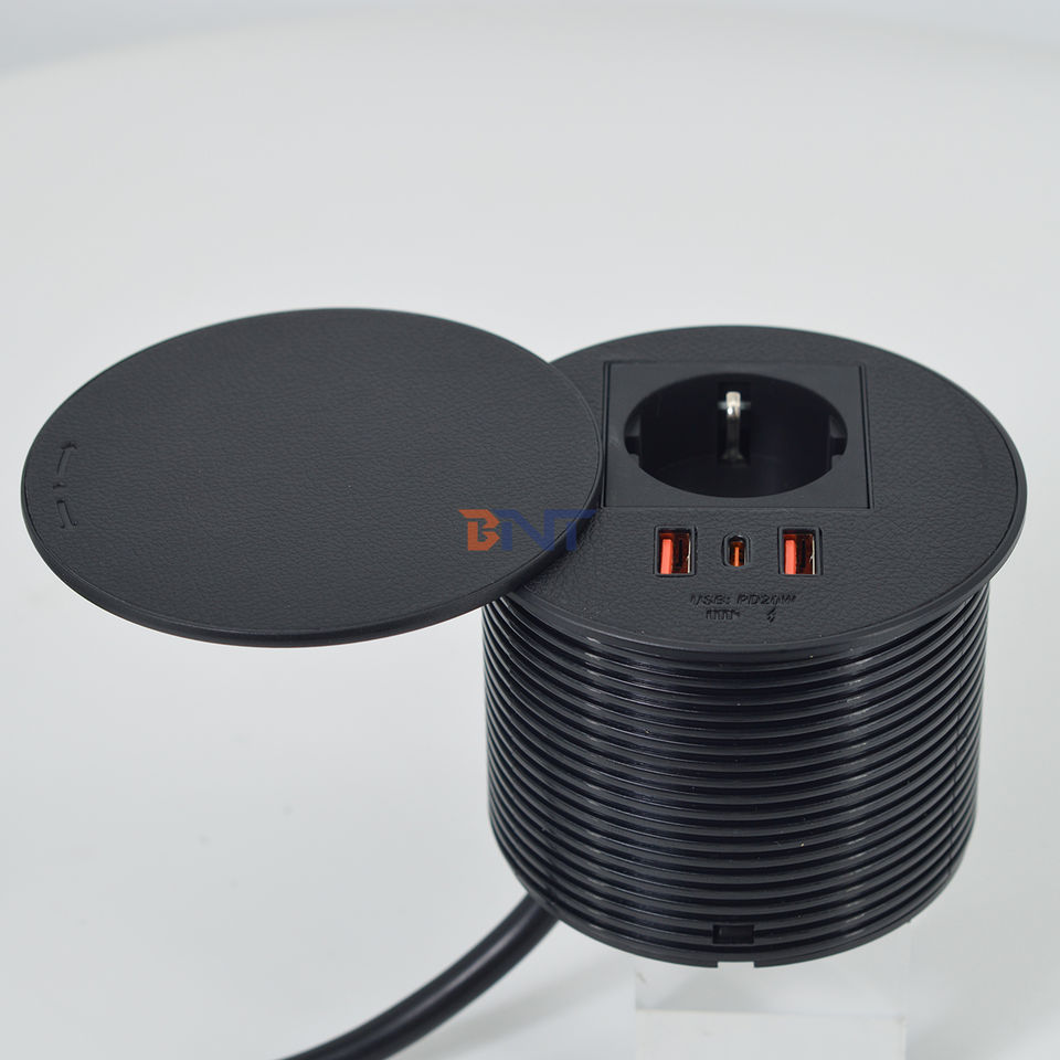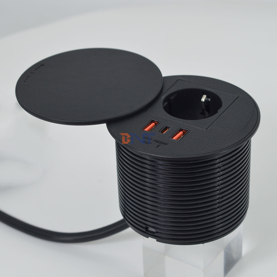 Enchufe de Corriente Circular Pequeño para Escritorio, 10A, IP44, USB Integrado, Forma de Sofá, Compatible con Estándares de EE. UU./UE